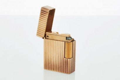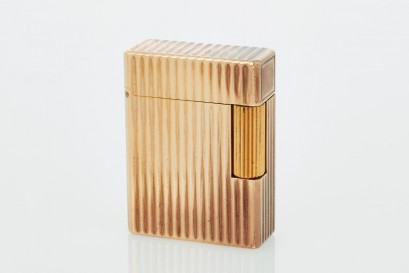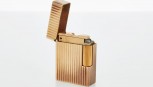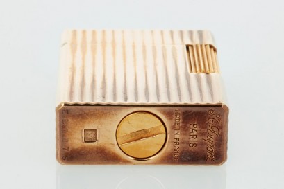 gold plated, with vertical lines design, marked 'S. T. Dupont Paris made in France' and numbered