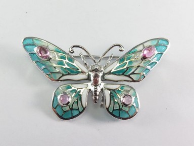 Lot Description:A Plique A Jour Enamel, Rubellite and Diamond Butterfly Brooch