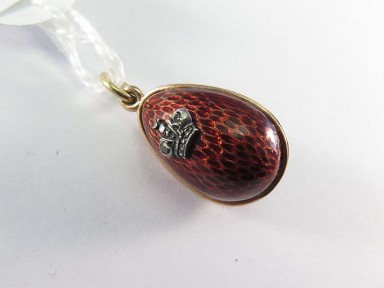 red gold enamel with diamond-set crown motif; 9ct gold to jump ring. -