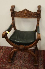 Lot Description:A Victorian style Savonarola type desk chair of Gothic style