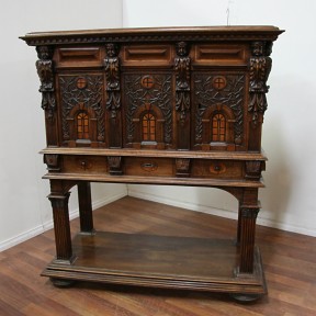 Lot Description:A fine South German Renaissance style walnut cabinet on stand fitted with three central drawers