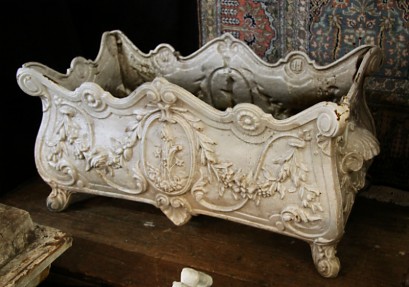 Lot Description:A pair of Victorian style cast iron rectangular planters having floral decoration