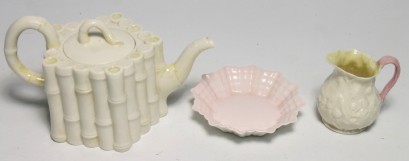 Lot Description:A Belleek Teapot & Creamer- First & Second Black Mark