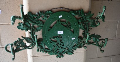 Lot #234 - Green painted cast metal wall mountable hat & coat rack