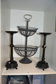 Lot Description:Pair of large metal candlestick holders & a wire form