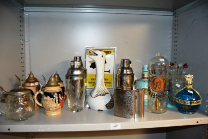 Lot Description:Shelf: bar items incl. lidded beer steins