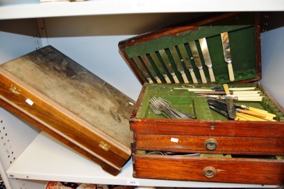 Lot #904 - 2 timber cutlery canteens incl. early examples of large number of cutlery