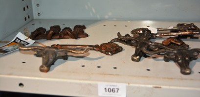 Lot #1067 - Qty of metal items to incl. steer head handles