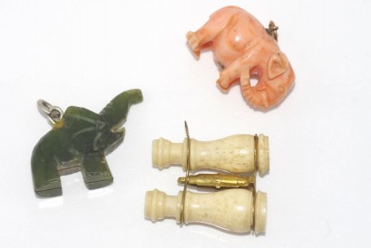 Lot Description:Coral and nephrite jade elephant pendants