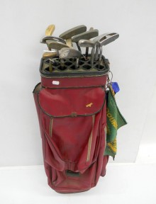 Lot Description:A Burgundy Leather Cart Bag with Twelve Clubs