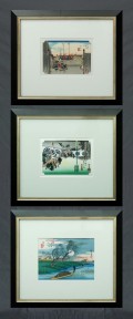Moon at Sea (16x22cm); Seki, Mie Prefecture (14x20cm); & Nihonbashi, Tokaido (14x20cm) (3) -