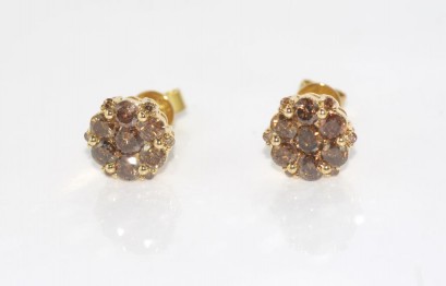 Lot Description:18ct yellow gold and cognac diamond earrings