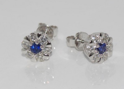 12 diamonds= 0.78ct with 2 Ceylon sapphire = 0.30cts, weight: approx 2.85 grams -
