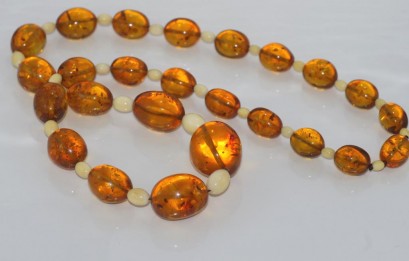 Lot Description:Matinee length amber and 1930s ivory necklace