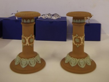 Lot Description:Pair of antique Doulton stoneware candlesticks
