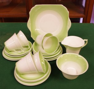 Lot Description:Shelley Deco green teaset