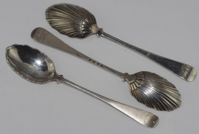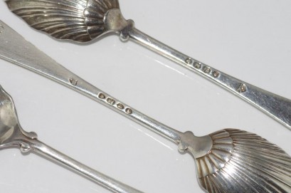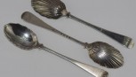 Lot #1214 - Three sterling silver shell form coffee spoons