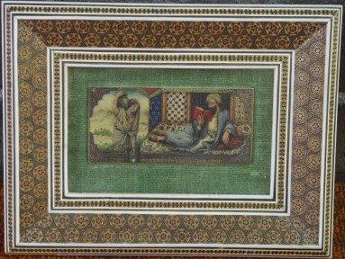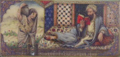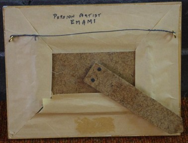 information verso "Persian artist Enami", 5 x 10.5 cm (image), 17 x 21.5 cm (frame) approx.