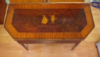 with inlaid fold over swivel top, 85cm wide, 72cm high -