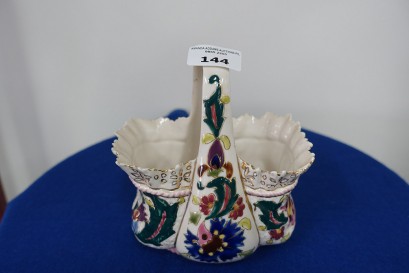 Lot #144 - Antique Fischer Budapest Art Nouveau polychrome and ivory glazed handled basket