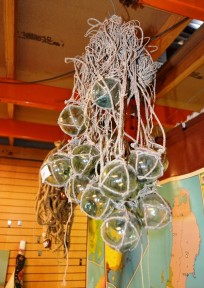 Lot Description:Qty small hand blown glass buoy floats with netting