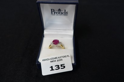 Lot #135 - 18 ct yellow gold, platinum ruby and diamond ring