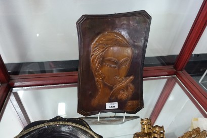 Lot #150 - Signed 1963 European copper wall panel of a lady sniffing flowers