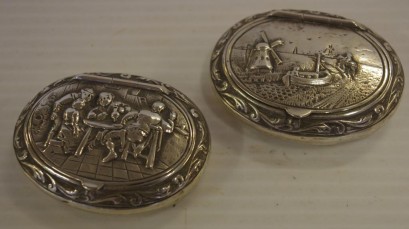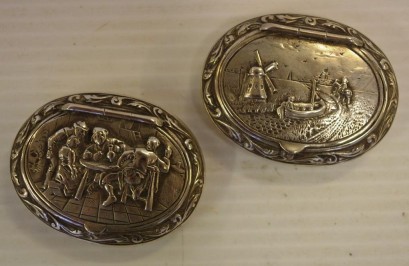 both embossed with traditional scenes, both stamped to base, 42grams -