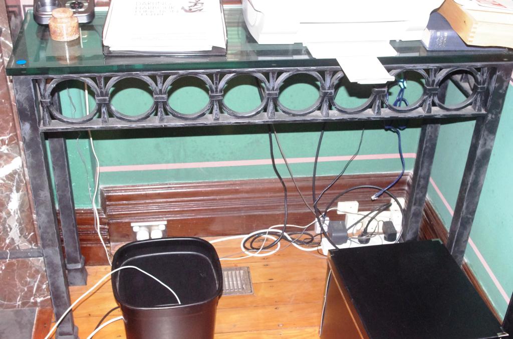 Lot Description:Glass and iron side table