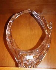 Lot Description:Large Vannes French art glass bowl in swirl design with 2 overhead fronds