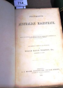 Lot Description:Book: 'Plunkett's Australian Magistrate', new edition by William Hattam Wilkinson