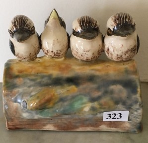 of four Kookaburra on a log. 11.5 x 15cm. -