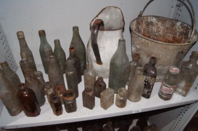 Lot #1140 - Shelf: vintage unearthed glass bottles