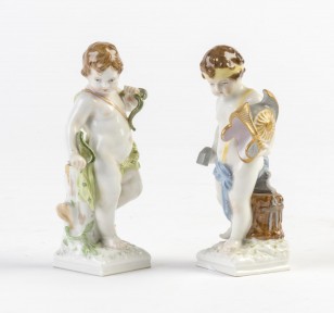 Lot Description:A pair of Berlin figures of cupid, one wearing a helmet the other holding a snake, early 19th century