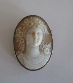 Lot Description:Vintage silver gilt Flora shell cameo brooch