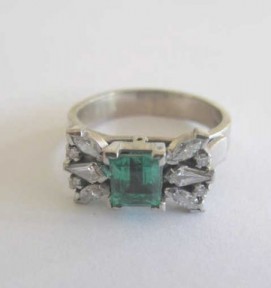Lot Description:18ct white gold Columbian emerald diamond ring