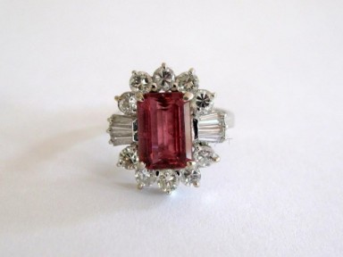 Lot #254 - 14ct white gold Tourmaline Diamond ring