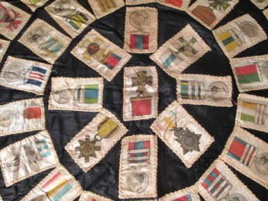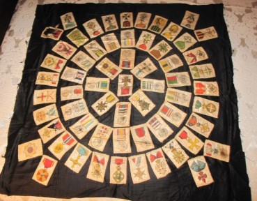 Lot #302 - Black silk panel of antique silk cig cards depicting various English military medals