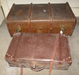 Lot Description:Large antique steamer trunk and leather suitcase