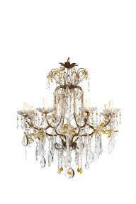 Lot Description:An amber and clear glass chandelier in the style of Bagues, French, circa 1920