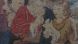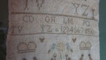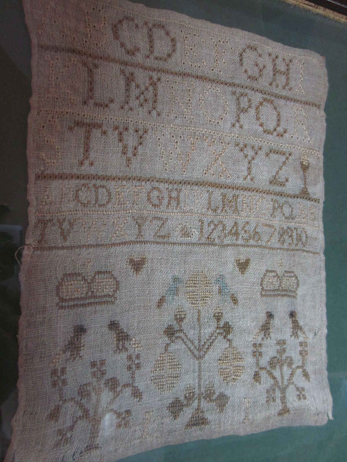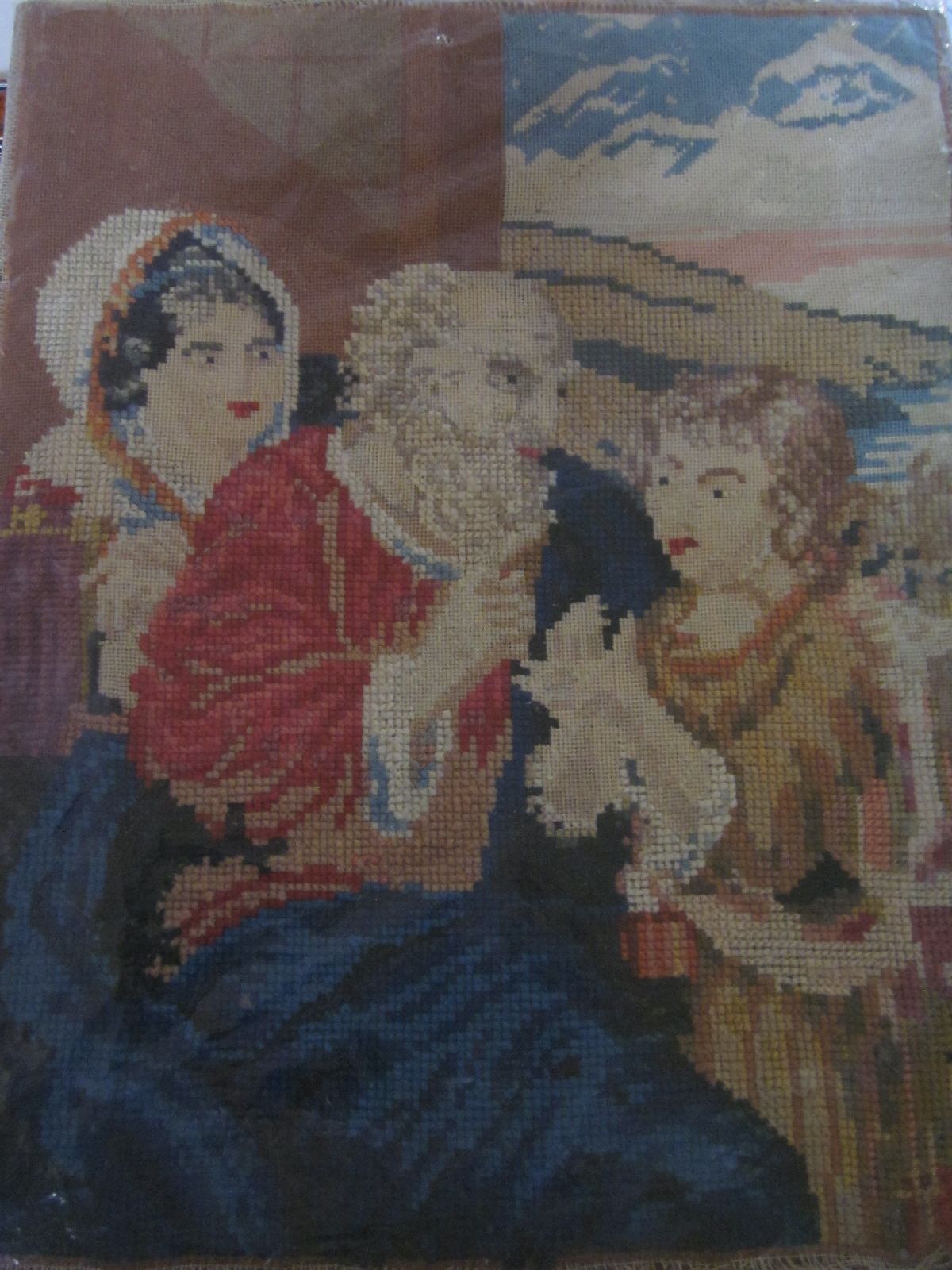 both in mixed condition with discolouration to backing cloth, one worked by Kate Allen in 1855, breaks to glass; both mounted on green card in modern frames (39 x 34cm); together with a late 19th Century biblical wool-work picture unframed (38 x 30cm) (3) -
