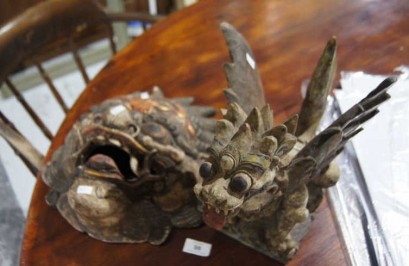 Lot #98 - 2 vintage Indonesian carved items incl. a mask and a gargoyle