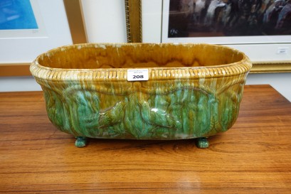 Lot #208 - John Campbell Tasmania green and tan bird and foliate decorated pottery planter