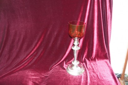 with ruby glass tea candle holder to top -