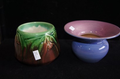 incl. 1 x Melrose ware with gumnuts and leaves in green and brown with crackle glaze the other by Clytie Pate with lilac and blue colouring, each approx. 8cm T -
