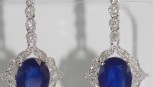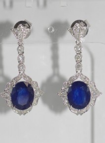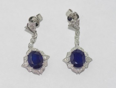 Lot Description:18ct white gold, sapphire & diamond drop earrings