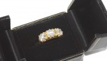 multi-claw half hoop antique style ring, 1.077ct, 1.134ct and 1.074ct, colour H, clarity P3. Total weight: 8.76 grams, size: M-N/6. Valuation available dated 1991 -