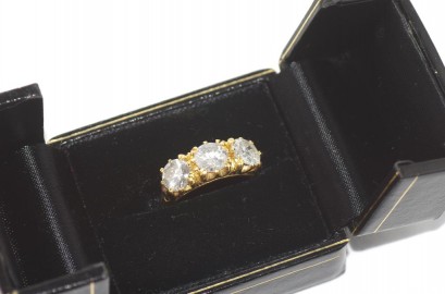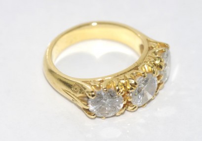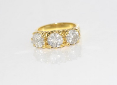 Lot Description:18ct yellow gold, 3 diamond (tot 3.285 ct) ring