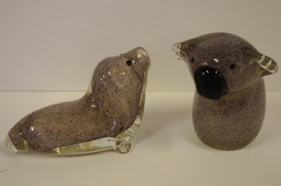 Koala 8.5cm high & a seal, both with labels -