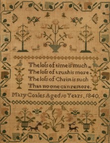 Lot Description:Georgian Framed Needlework Sampler, c. 1840